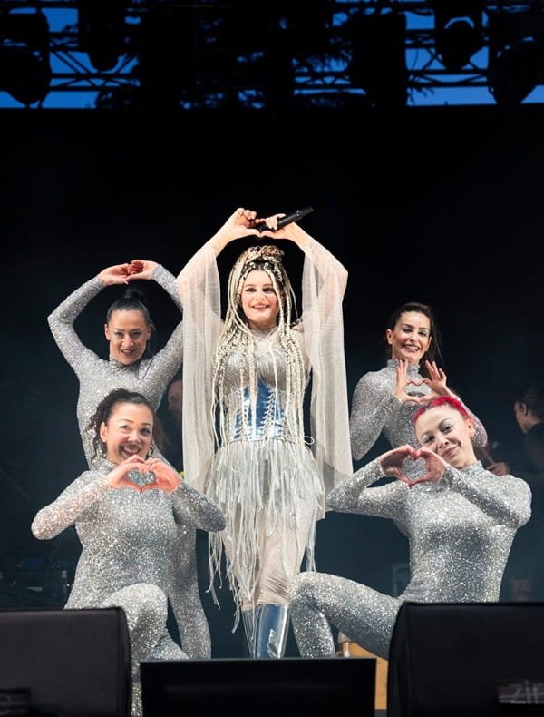 2 saat boyunca tempoyu bir an bile düşürmeyen Atiye, dansçılarıyla birlikte adeta görsel bir şov sunarken, binlerce hayranını coşturdu.