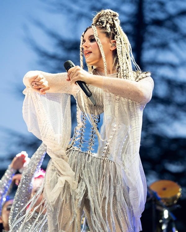 “Budur”, “Salla” ve “Ya Habibi” gibi hit parçalarını peş peşe seslendiren güzel yıldız, sahnedeki dansları ve iddialı kostümüyle tüm bakışları üzerine topladı.