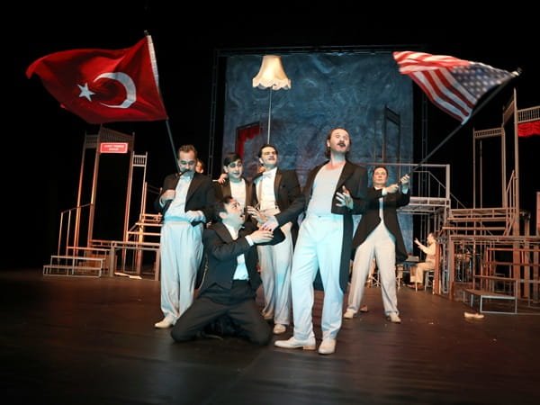 Dekoru, ışığı, kostümleri, oyunculukları ve eşsiz mizahıyla Bursa seyircisini adeta büyüleyen oyun, dakikalarca alkışlandı.