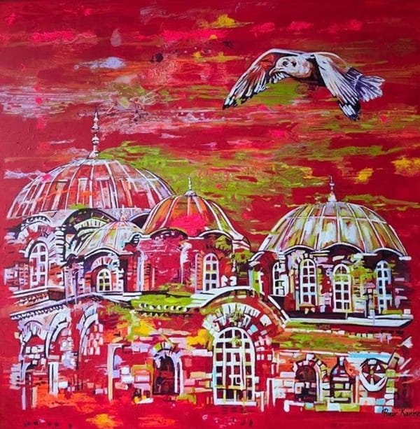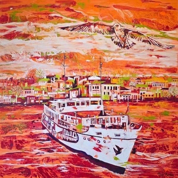 Şehrin üst üste binmiş zamanlarını, seslerini ve suskunluklarını taşıyan bu figürler; aynı zamanda İstanbul’un kültürel belleğinde yer etmiş şiirsel bir dili de çağrıştırıyor. Martılar, geçmişte kervansarayların taşıdığı hareketin yerini alan yeni bir ses olarak, sanatçının resimlerinde hem bir çığlık hem de yeniden üretimin simgesi haline geliyor.